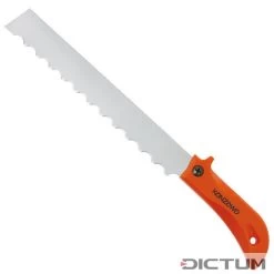 La lame ondulée en acier spécial chrômé dur haute résistance (60 HRC) est spécialement conçue pour les isolants en fibres, mousse, polystyrène, feutre et carton.