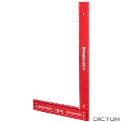 Cette équerre de précision de Woodpeckers est fabriquée en aluminium très rigide et donc très robuste. Grâce au procédé de fabrication spécial, la précision est de 0,01 mm sur 100 mm. Avec le doublage de poignée des deux côtés, l’équerre dispose d’une lèvre d’appui au niveau des surfaces de contact permettant un traçage confortable. Le trou oblong fraisé dans la lame du modèle 1281 offre une possibilité de préhension supplémentaire. Livrée avec support mural en MDF. Échelle en mm.