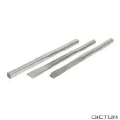 Ces poinçons à points pour bois conviennent parfaitement aux ornements de fond des sculptures en relief ou pour la décoration d’objets de tournage. Associés à la technique airbrush, il est possible de réaliser des aspects métalliques plus vrais que nature. L’acier haute qualité et les pointes de forme précise garantissent une longue durée de vie même dans le bois dur. Jeu de 3 pièces avec fer carré, triangulaire, linéaire.