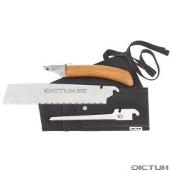 Jeu de scies souples avec lame de scie universelle pour les coupes précises ainsi qu’une lame de scie à guichet pour les coupes dans des espaces restreints et les coupes incurvées. Grâce à une fermeture pratique à changement rapide, vous changez les lames de scie en un tour de main. Relevez simplement le levier vers le haut et retirez la lame de scie vers le bas. La lame possède un double blocage et est parfaitement en place ! La poignée en chêne rouge tient bien en main grâce à sa forme ergonomique, et possède une esthétique agréable. Livré en sac de toile de coton haut de gamme.