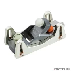 Le HP-8, un petit rabot de paume excellent, peut être converti en rabot à dégauchir de précision grâce aux patins latéraux en option. Il est idéal pour les travaux de marqueterie, les incrustations de bordure des guitares, le Kumiko (technique raffinée de marqueterie japonaise) et pour tous les travaux où plusieurs pièces doivent être rabotées exactement à la même épaisseur. Pour ce faire, placez d’abord le matériau de référence de l’épaisseur souhaitée sous l’avant et l’arrière de la semelle du rabot. Fixez maintenant les patins latéraux de façon à ce qu’ils reposent sur l’établi. L’épaisseur peut être réglée avec une précision de 0,025 mm. Largeur max. de la pièce 28,5 mm. Le corps du rabot et les patins sont fraisés et anodisés en aluminium haut de gamme. Angle d’inclinaison 12°, angle de biseau 30° L’angle de coupe est donc de 42°. Fer de rabot en acier A2. Pas de réglage latéral du fer. Ouverture du rabot réglable.