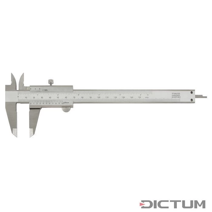 Avec graduation gravée profonde anti-reflet en mm et pouces. Pied à coulisse en acier spécial avec vernier 0,05 mm et vis de blocage.
